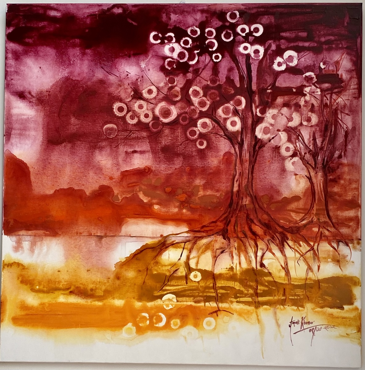 Anjali’s art attempts to capture the awe that nature inspires, in a kaleidoscope of unexpected colour that aims to uplift, delight and leave a sense of joy and positivity in the beholder, in a stark departure from contemporary art on the continent that often showcases the bleakness of life.